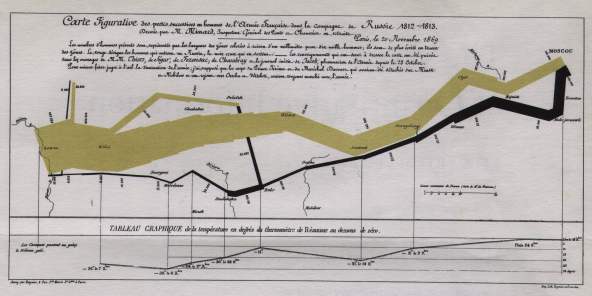 Multi-dimensionality is the idea of displaying information using more dimensions than are physically possible use a particular medium. The above image is an example of this. It is a chart of Napoleon's march on Moscow. contained within this two dimensional image six dimensions are charted. the colors indicate when the army is marching towards or away from Moscow. The thickness of the lines indicate the army's size. the location of the lines indicates the army's geographic location, and the graph at the bottom indicate date and temperature. This chart served as the inspiration for the user interface. I experimented with the idea of using textures, shapes, varying sizes, colors, locations, and the speed of rotation. Again, the relatively small amount of information that needed to be displayed allowed me to remove a few of these, drastically reducing the overall confusion level. By making the choice to allow the use of text, the level of complexity was dropped to a usable level.The final aspect of my research was trying to decide on a visual metaphor to give the user an inherent since of the information being displayed. A number of metaphors were looked at. These included the ideas of representing the system like a desktop, or office, a house with different rooms, the internal human body, a car etc. Each one of theses fell short in at least one area, most in many more. What does it mean to the average person when their desk is on fire, the house plants have all attached themselves to the walls, and your brain has been replaced by an enlarged spleen?